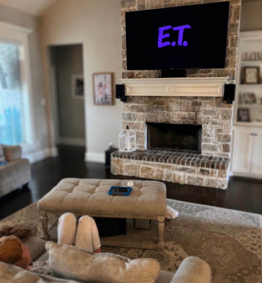 Just the other day, he asked me if I knew any movies about aliens that he could watch. Star Wars is already one of those little corners of shared interests we have, so I wanted to branch out from lightsabers and Mandalorians. I have a copy of Spielberg’s classic E.T. in my collection of Blu-rays and 4K discs, and it felt like a good one to introduce to him. It’s a little slow for someone who just recently saw the flashing colors and “doot doots doots” of the latest Mario movie on the big screen, so I wondered how he would handle it. He sat quietly on the couch absorbing it, letting cinema actually happen in front of him rather than seeking some sort of constant stimuli. He took a few occasional breaks to ask clarifying questions or point out Elliott’s Star Wars action figures (look, we can only branch so far from the things we love, like lightsabers and Mandalorians) and eventually had me pause the movie for him about halfway through so he could draw some aliens, which I think even Spielberg would say is a great way to watch movies.